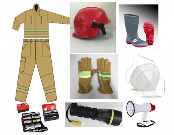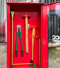 8. Bộ dụng cụ PCCC: Búa, rìu, kìm cộng lực, xà ben, thang dây, cáng cứu thương, ....